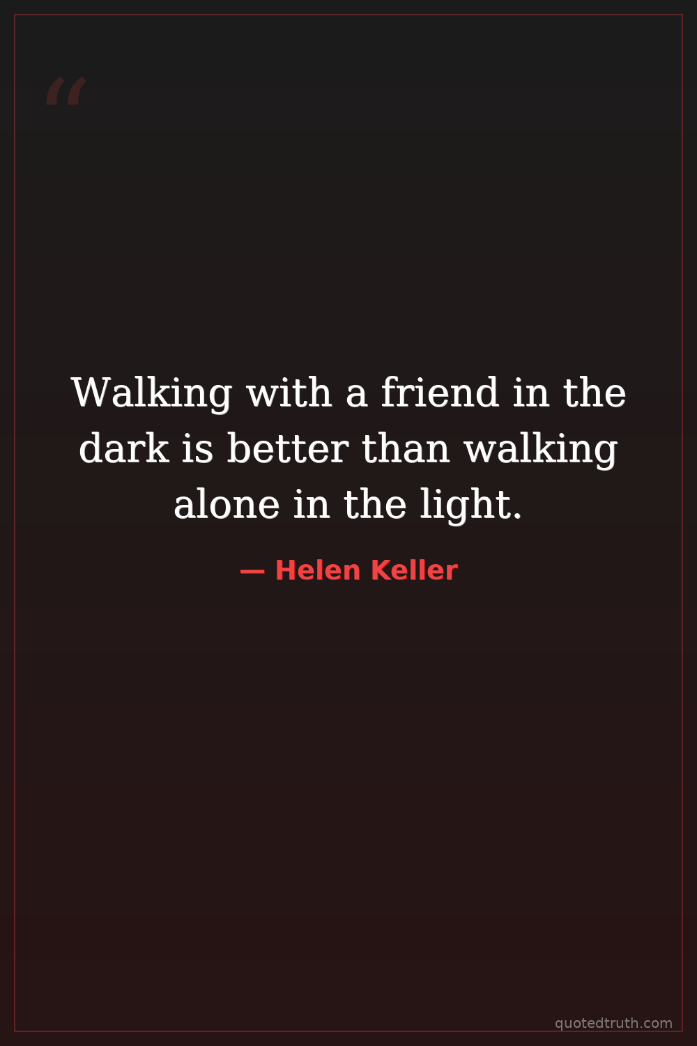 Walking with a friend in the dark is better than walking alone in the light.