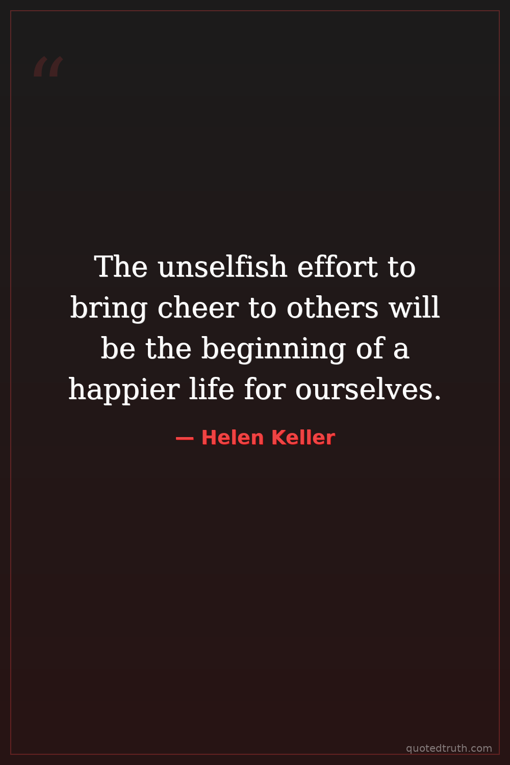 The unselfish effort to bring cheer to others will be the beginning of a happier life for ourselves.