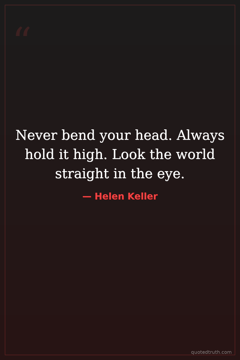 Never bend your head. Always hold it high. Look the world straight in the eye.