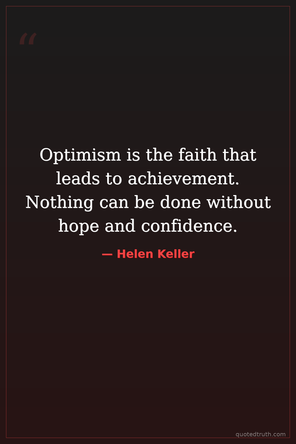Optimism is the faith that leads to achievement. Nothing can be done without hope and confidence.