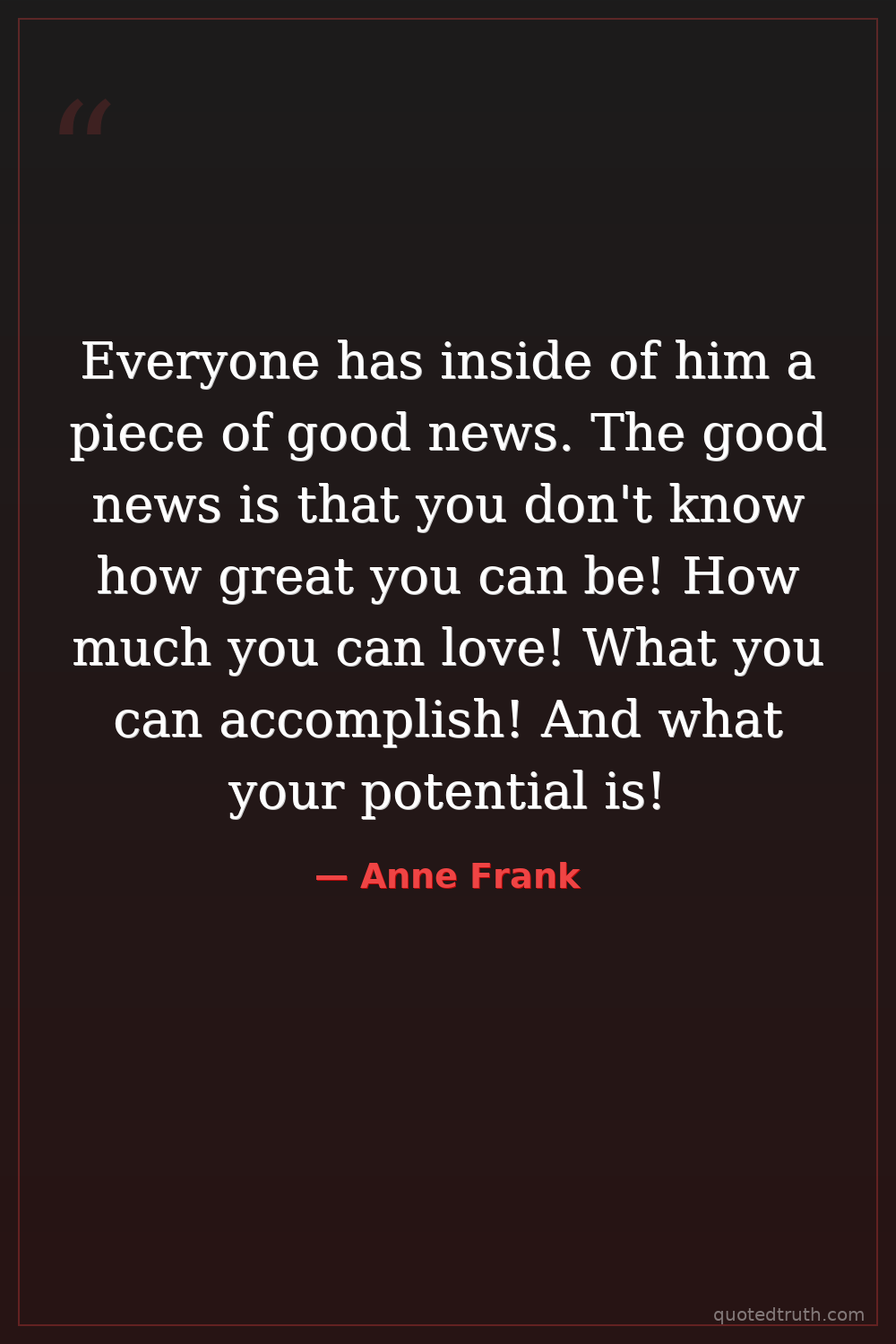 Everyone has inside of him a piece of good news. The good news is that you don't know how great you can be! How much you can love! What you can accomplish! And what your potential is!