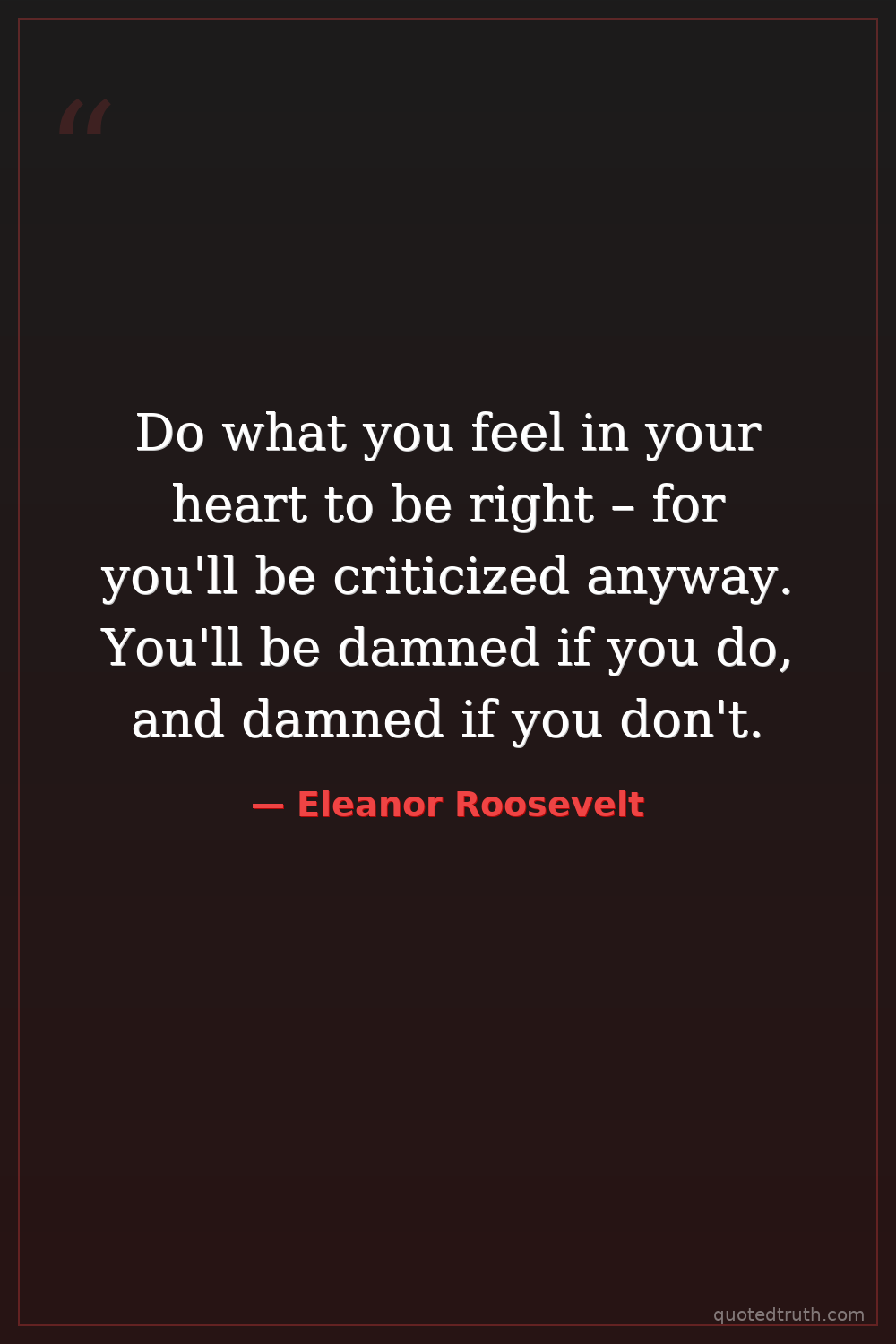 Do what you feel in your heart to be right – for you'll be criticized anyway. You'll be damned if you do, and damned if you don't.