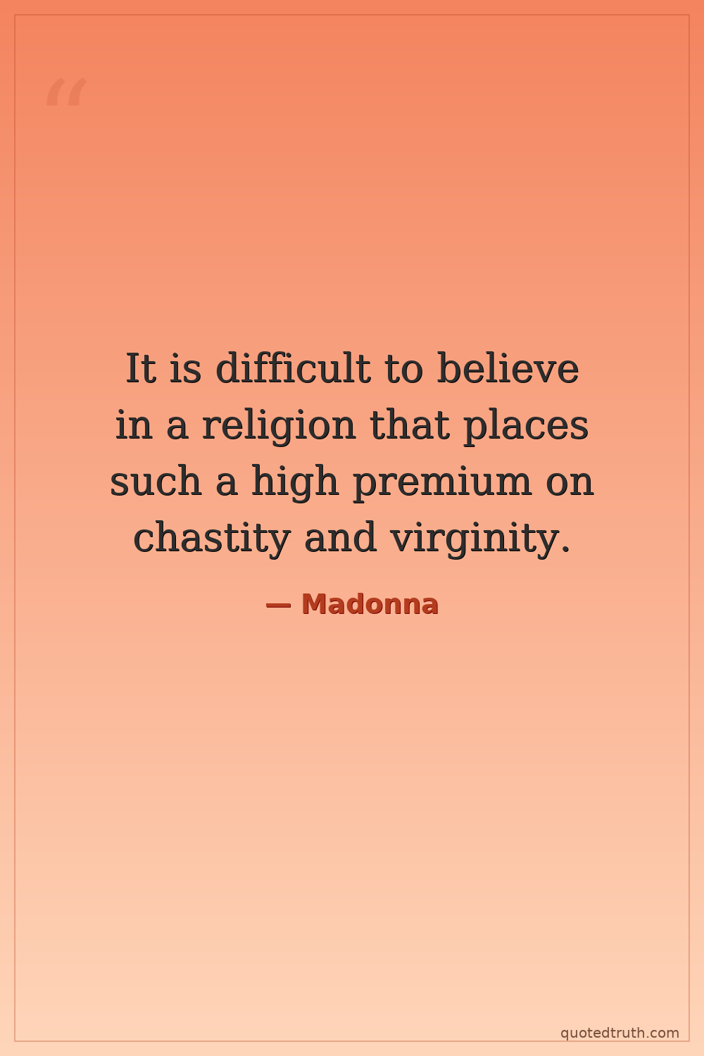 It is difficult to believe in a religion that places such a high premium on chastity and virginity.