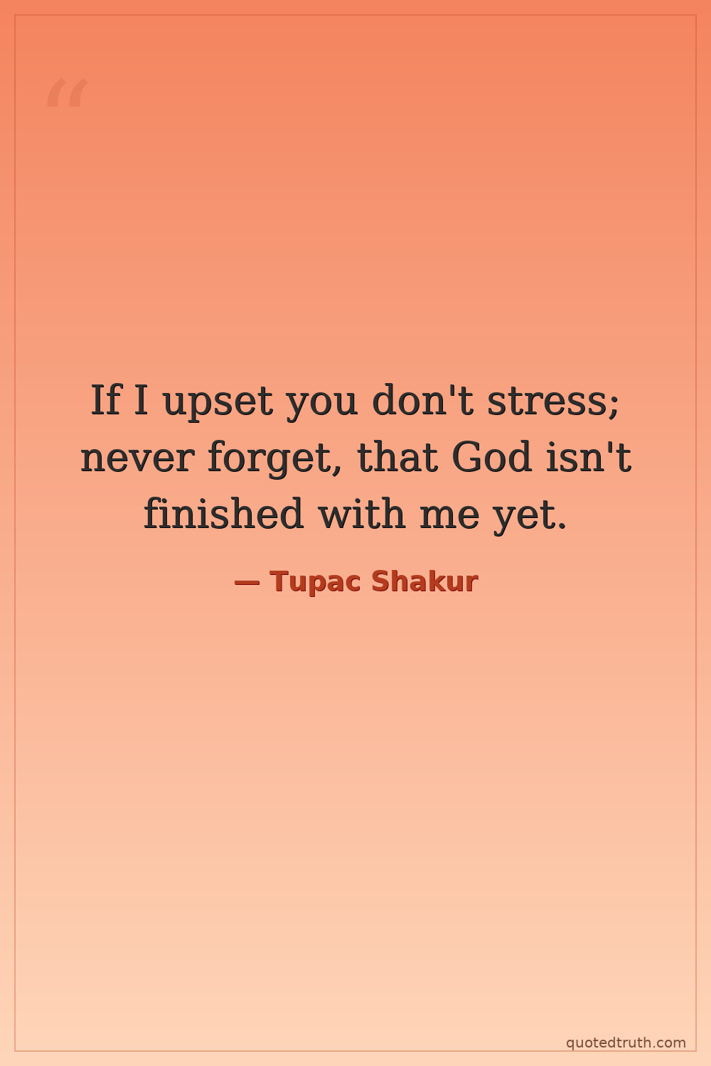 If I upset you don't stress; never forget, that God isn't finished with me yet.