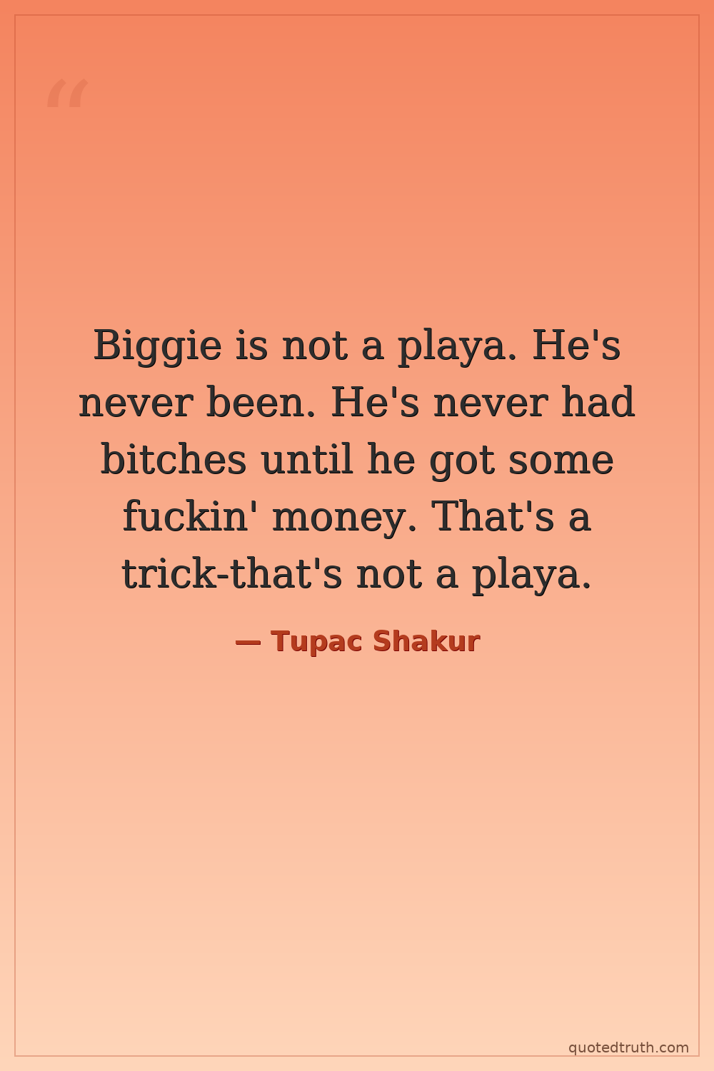 Biggie is not a playa. He's never been. He's never had bitches until he got some fuckin' money. That's a trick-that's not a playa.