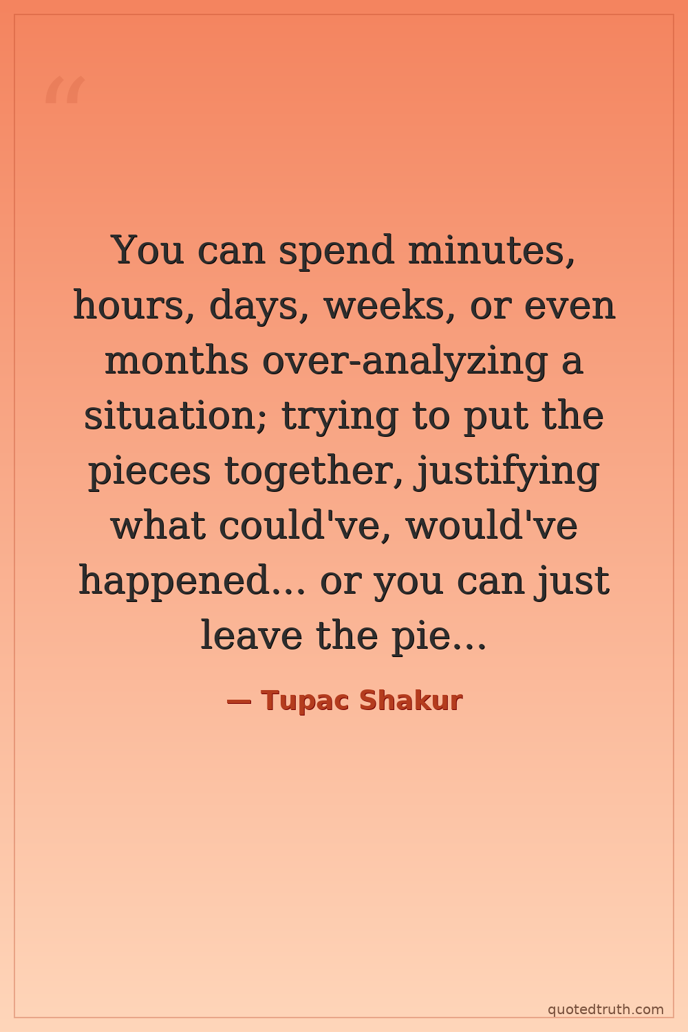 You can spend minutes, hours, days, weeks, or even months over-analyzing a situation; trying to put the pieces together, justifying what could've, would've happened... or you can just leave the pieces on the floor and move the f*** on.