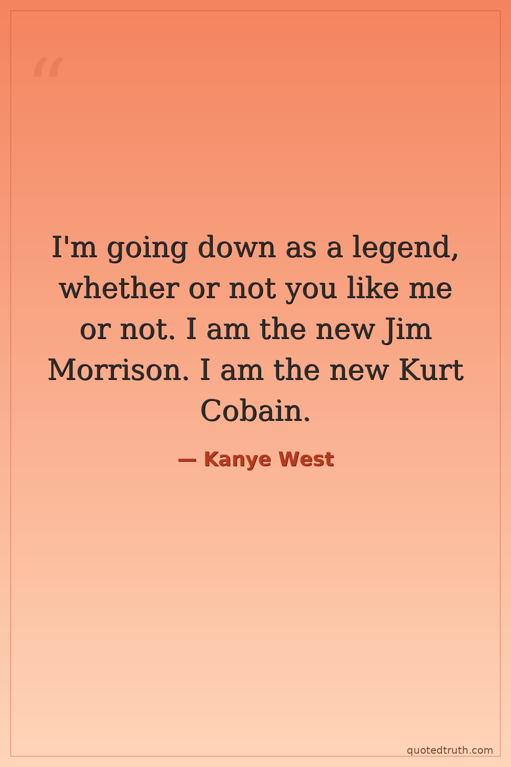 I'm going down as a legend, whether or not you like me or not. I am the new Jim Morrison. I am the new Kurt Cobain.