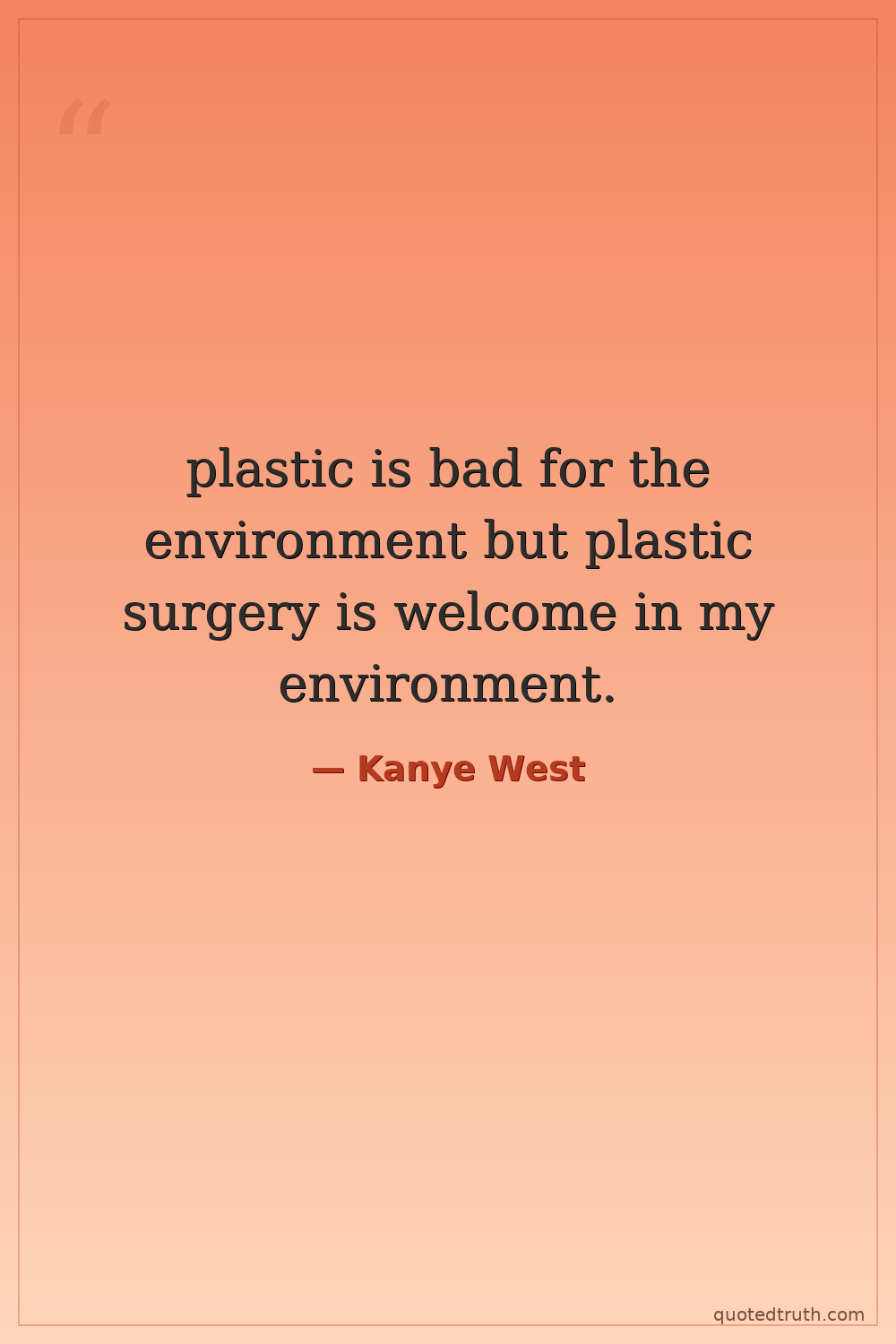 plastic is bad for the environment but plastic surgery is welcome in my environment.