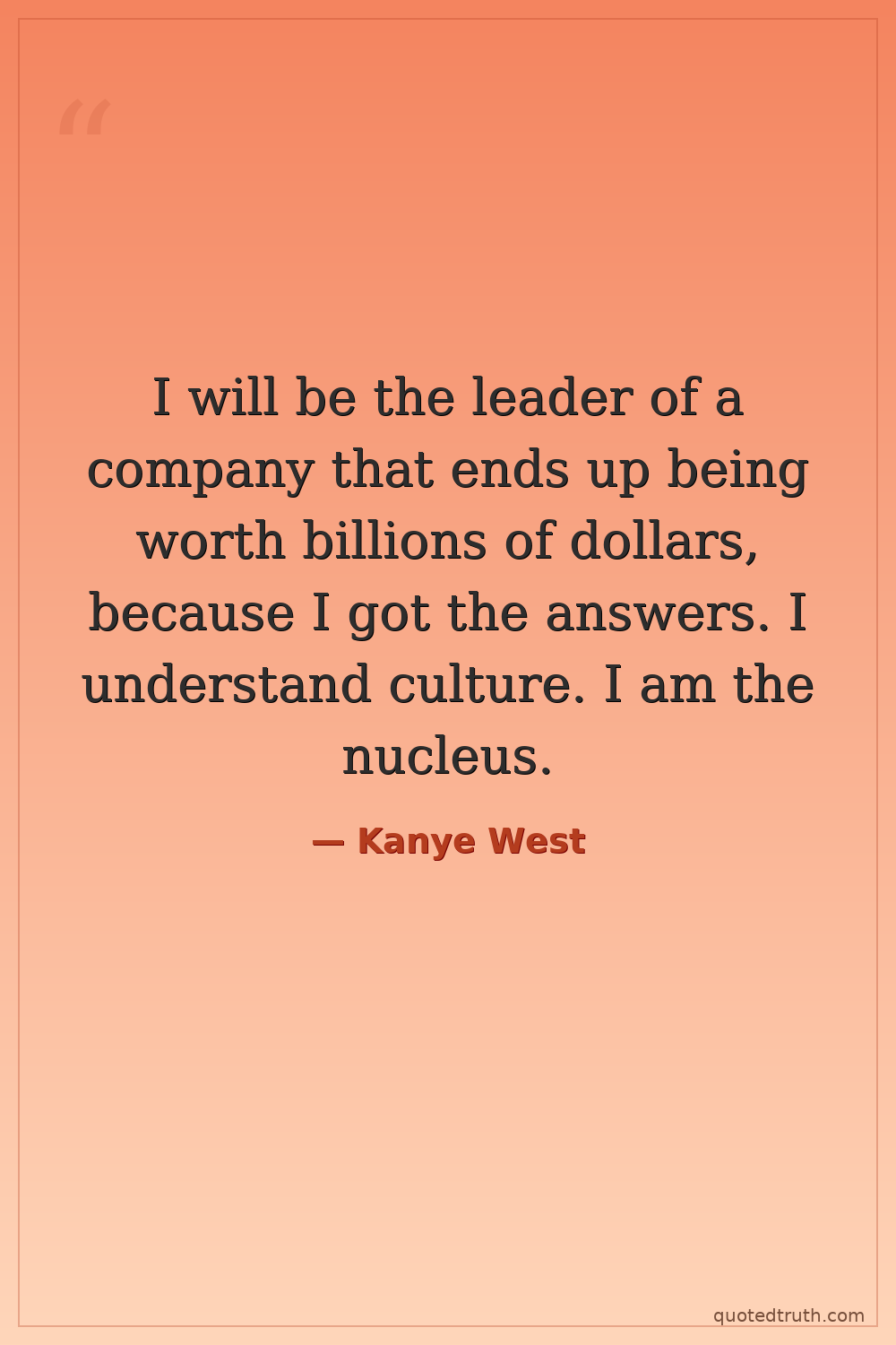 I will be the leader of a company that ends up being worth billions of dollars, because I got the answers. I understand culture. I am the nucleus.