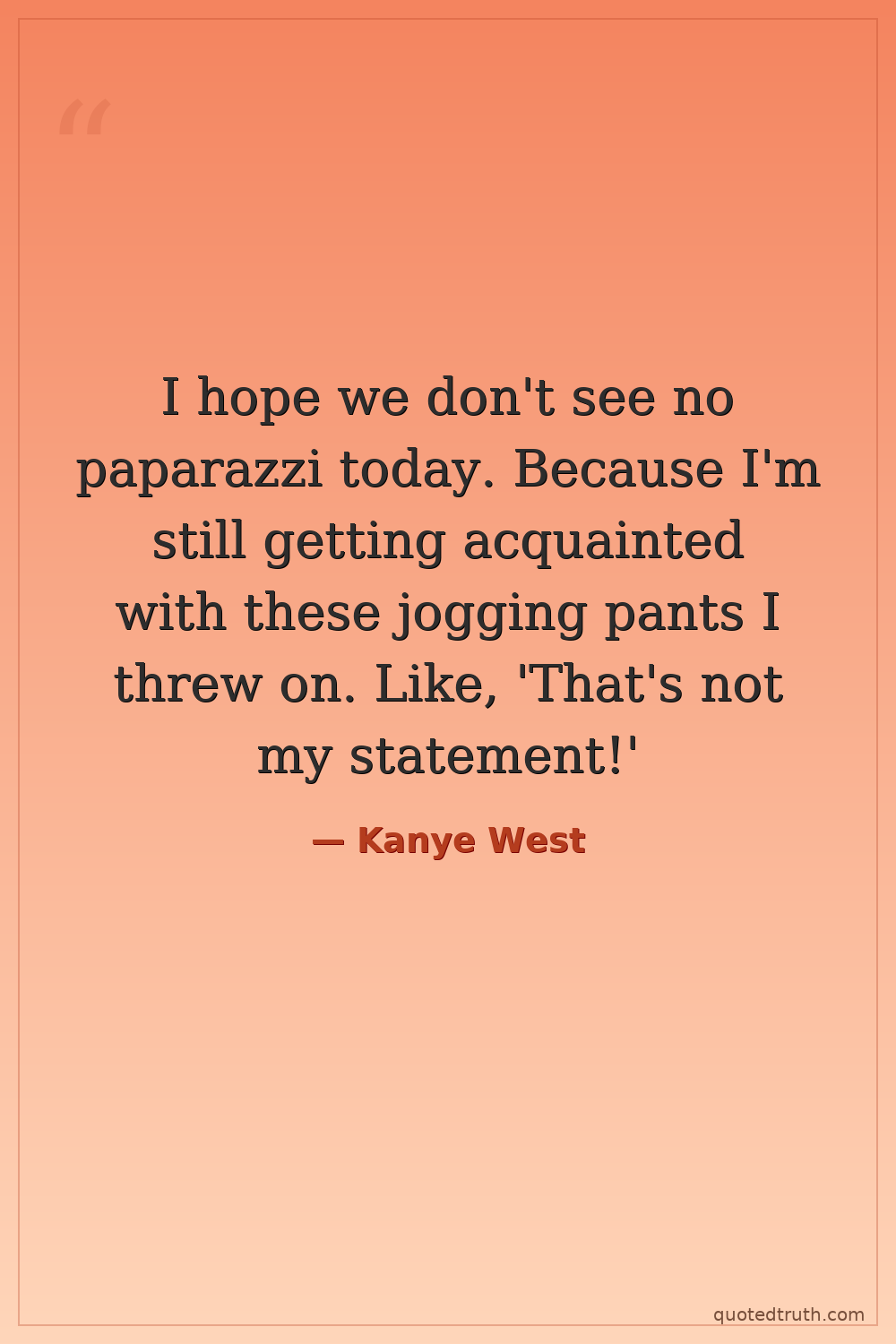 I hope we don't see no paparazzi today. Because I'm still getting acquainted with these jogging pants I threw on. Like, 'That's not my statement!'