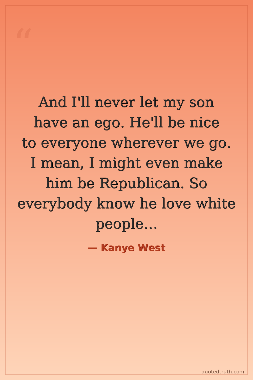 And I'll never let my son have an ego. He'll be nice to everyone wherever we go. I mean, I might even make him be Republican. So everybody know he love white people…