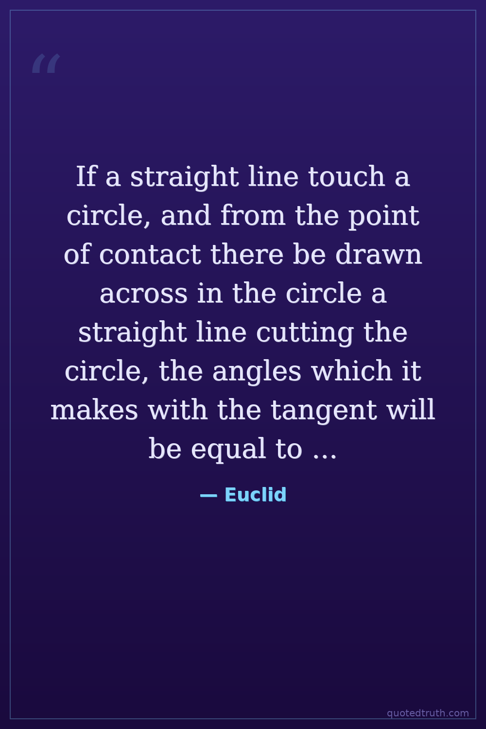 If a straight line touch a circle, and from the point of contact there be drawn across in the circle a straight line cutting the circle, the angles which it makes with the tangent will be equal to the angles in the alternate segments of the circle.