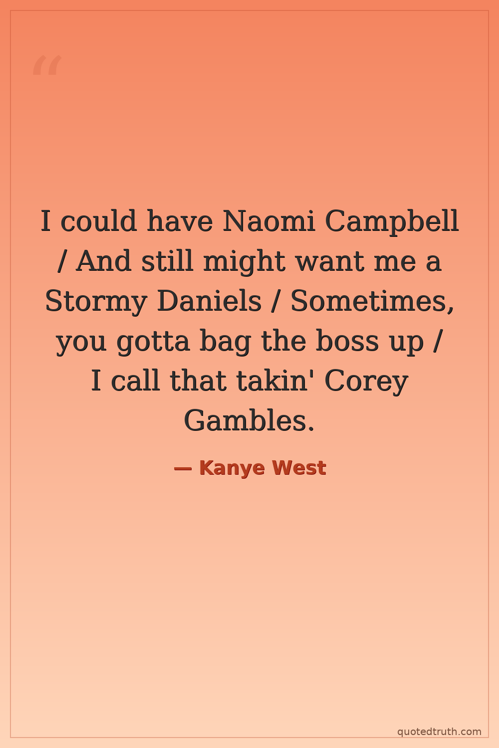 I could have Naomi Campbell / And still might want me a Stormy Daniels / Sometimes, you gotta bag the boss up / I call that takin' Corey Gambles.