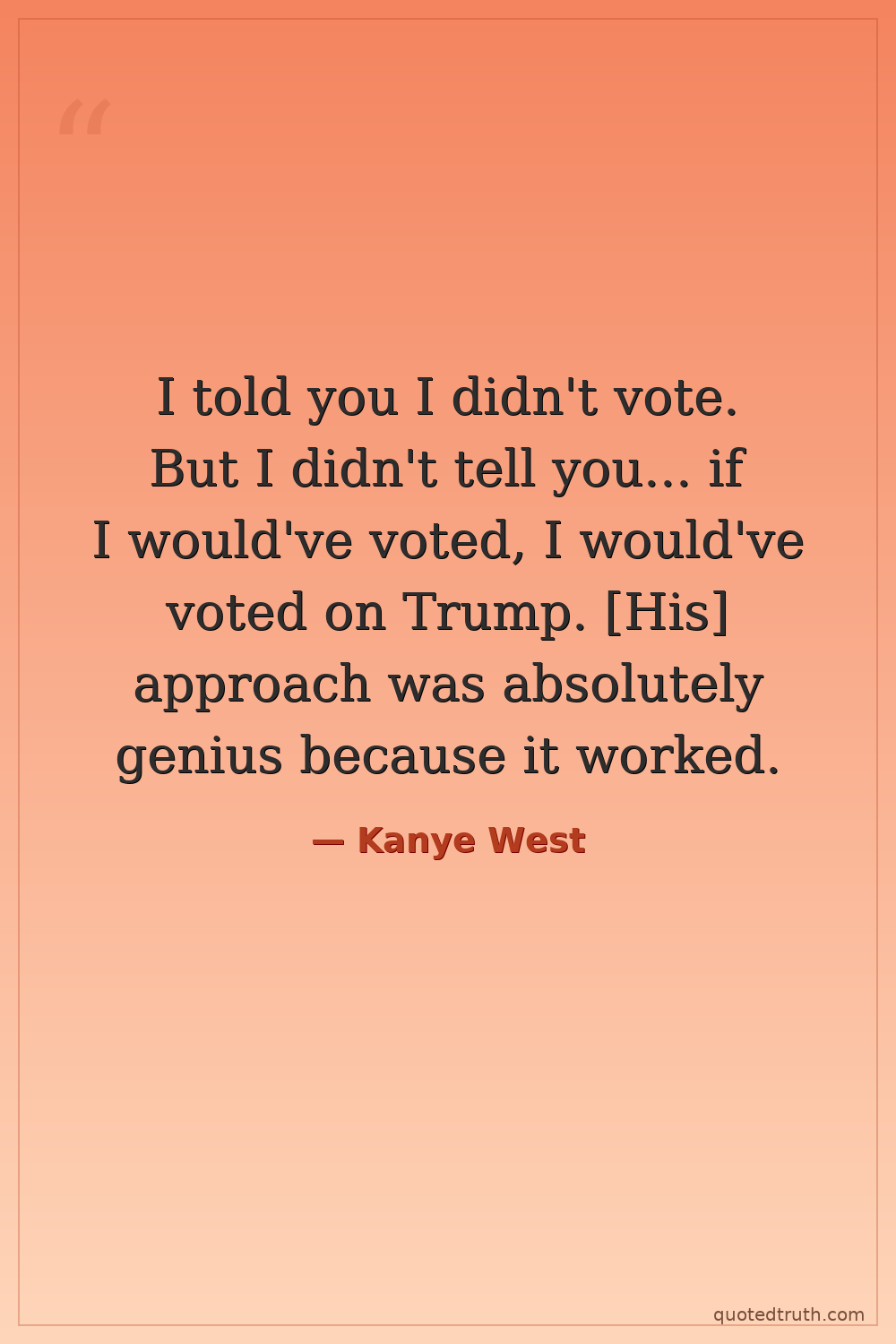 I told you I didn't vote. But I didn't tell you... if I would've voted, I would've voted on Trump. [His] approach was absolutely genius because it worked.