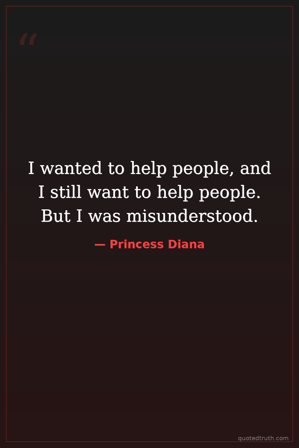 I wanted to help people, and I still want to help people. But I was misunderstood.