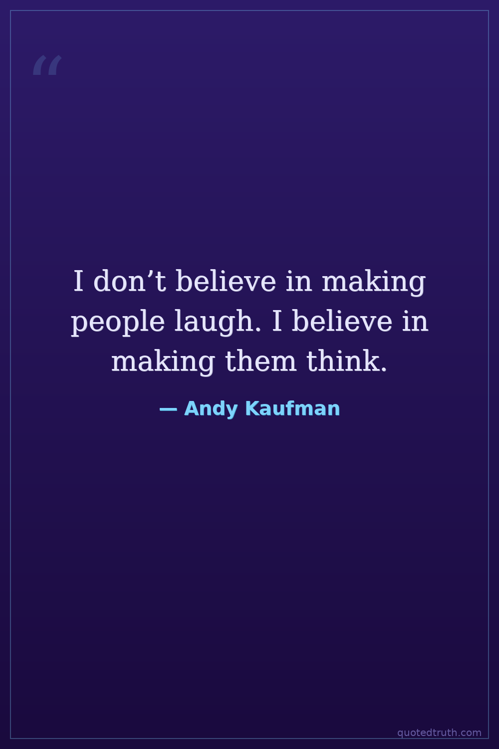 I don’t believe in making people laugh. I believe in making them think.