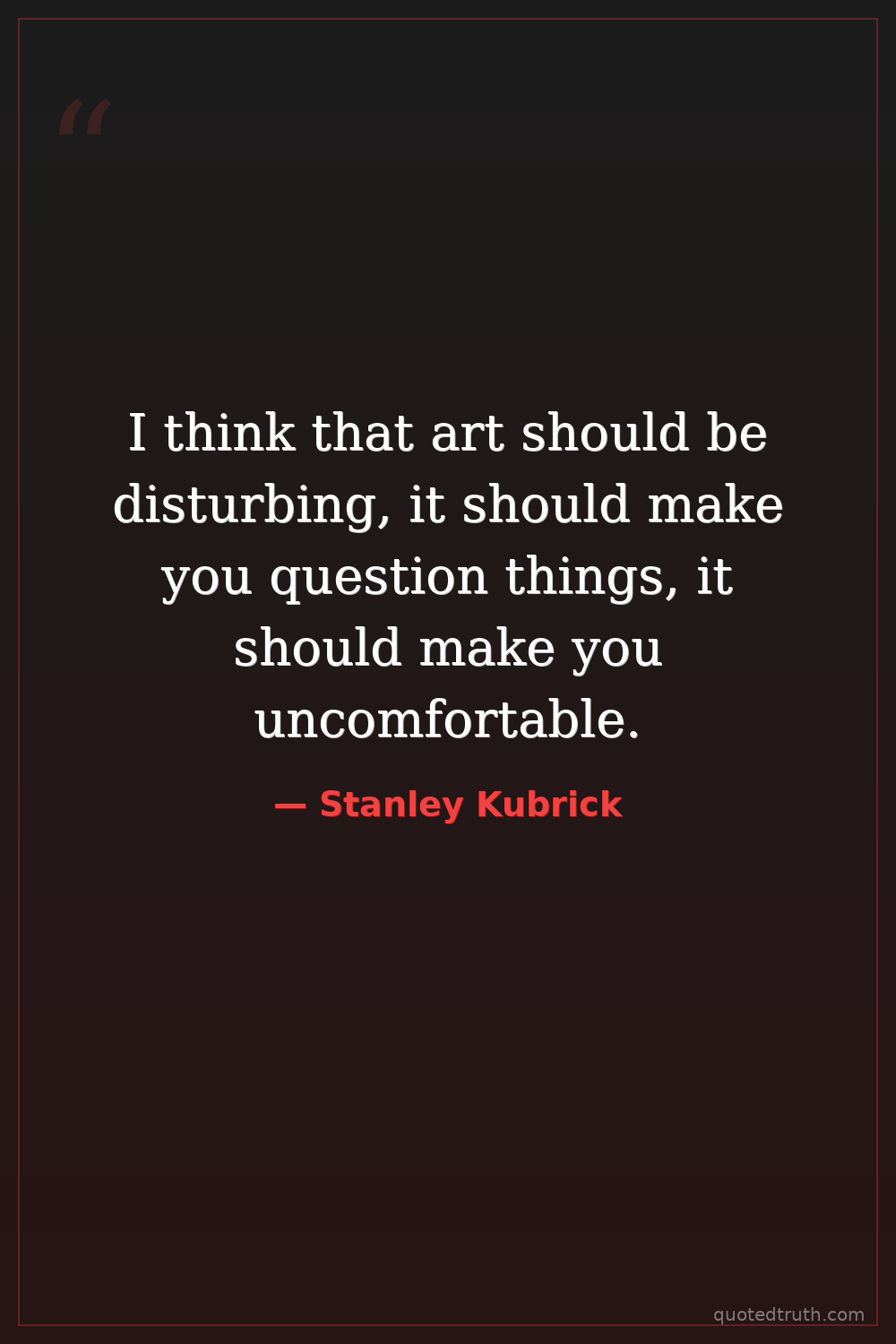 I think that art should be disturbing, it should make you question things, it should make you uncomfortable.
