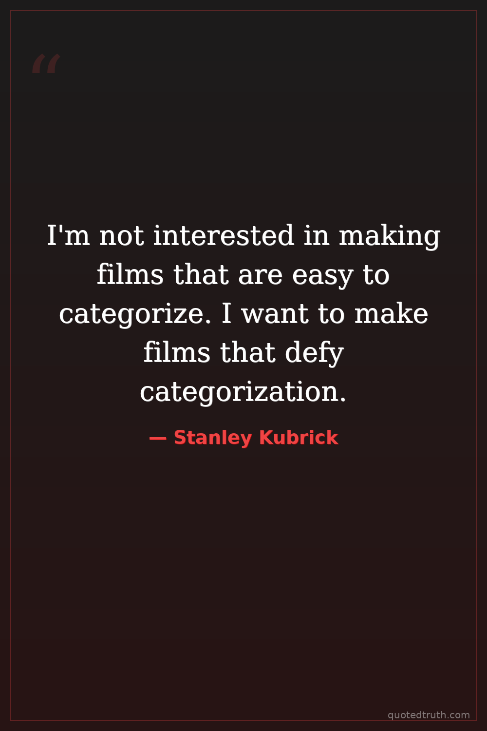I'm not interested in making films that are easy to categorize. I want to make films that defy categorization.