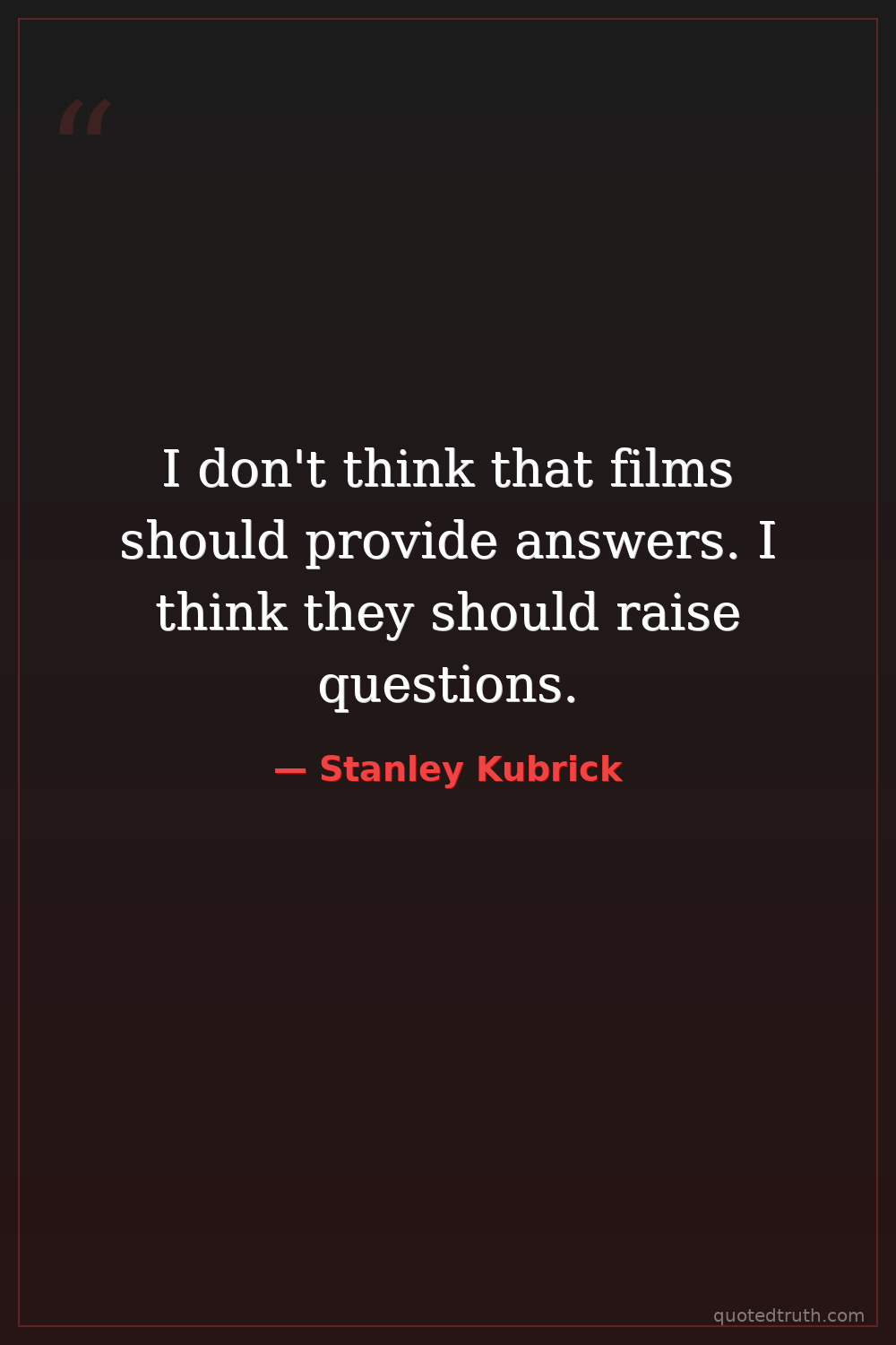 I don't think that films should provide answers. I think they should raise questions.