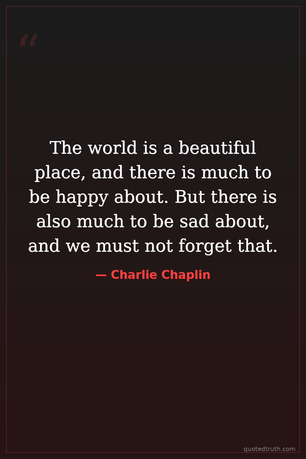 The world is a beautiful place, and there is much to be happy about. But there is also much to be sad about, and we must not forget that.