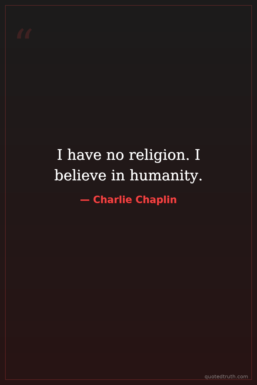 I have no religion. I believe in humanity.