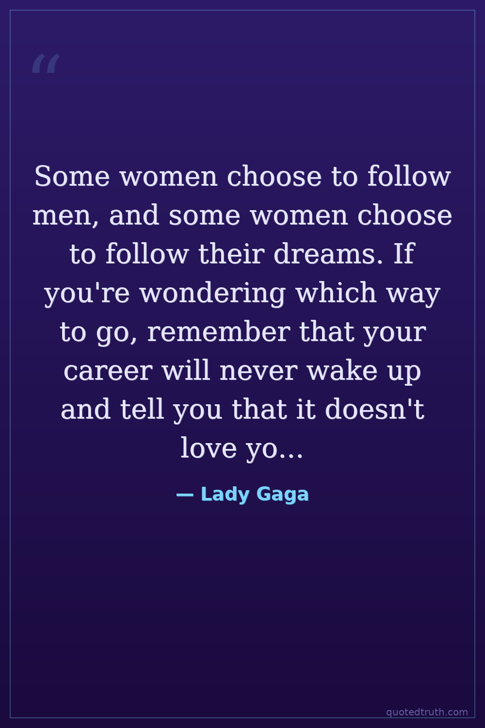 Some women choose to follow men, and some women choose to follow their dreams. If you're wondering which way to go, remember that your career will never wake up and tell you that it doesn't love you anymore.