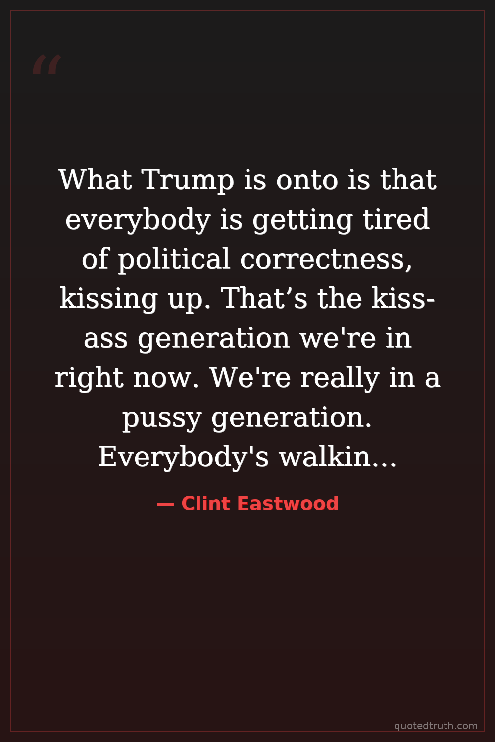 What Trump is onto is that everybody is getting tired of political correctness, kissing up. That’s the kiss-ass generation we're in right now. We're really in a pussy generation. Everybody's walking on eggshells. We see people accusing people of being racist and all kinds of stuff. When I grew up, those things weren't called racist.