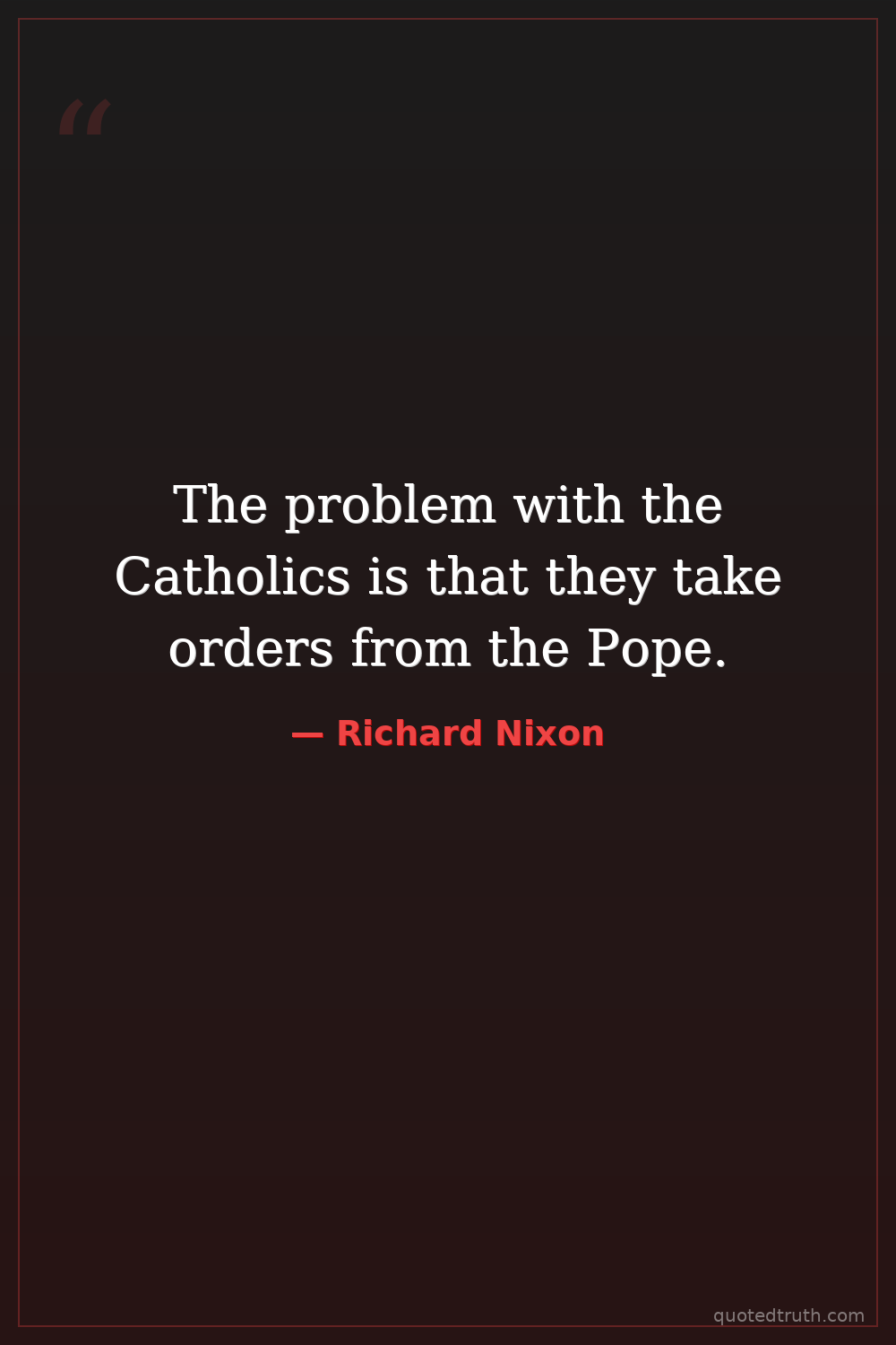 The problem with the Catholics is that they take orders from the Pope.