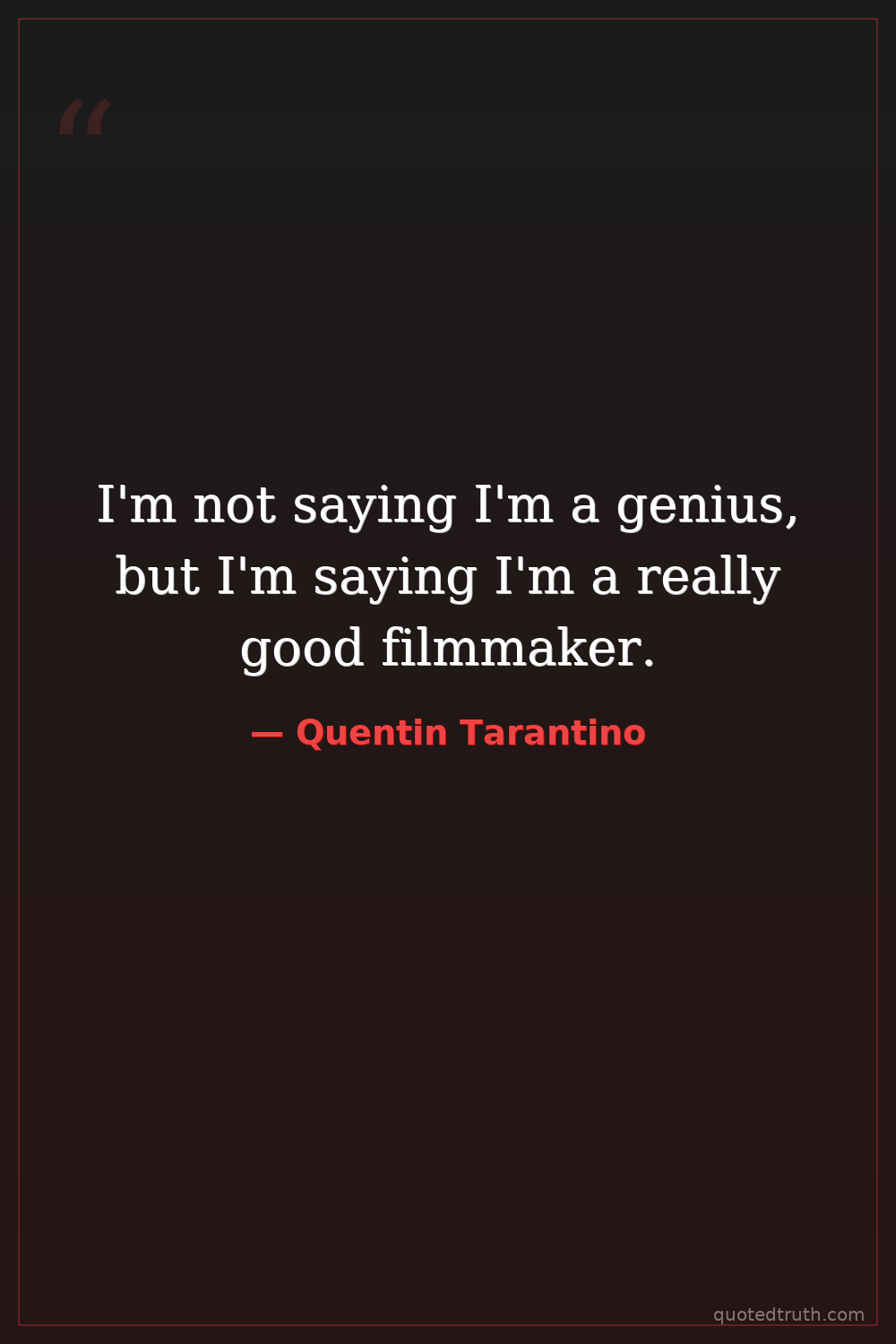 I'm not saying I'm a genius, but I'm saying I'm a really good filmmaker.