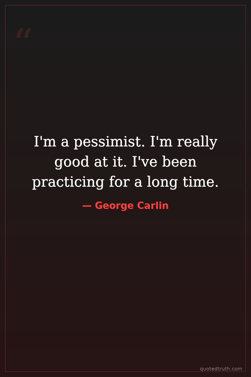 I'm a pessimist. I'm really good at it. I've been practicing for a long time.