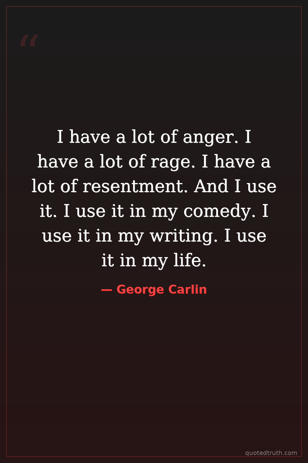 I have a lot of anger. I have a lot of rage. I have a lot of resentment. And I use it. I use it in my comedy. I use it in my writing. I use it in my life.