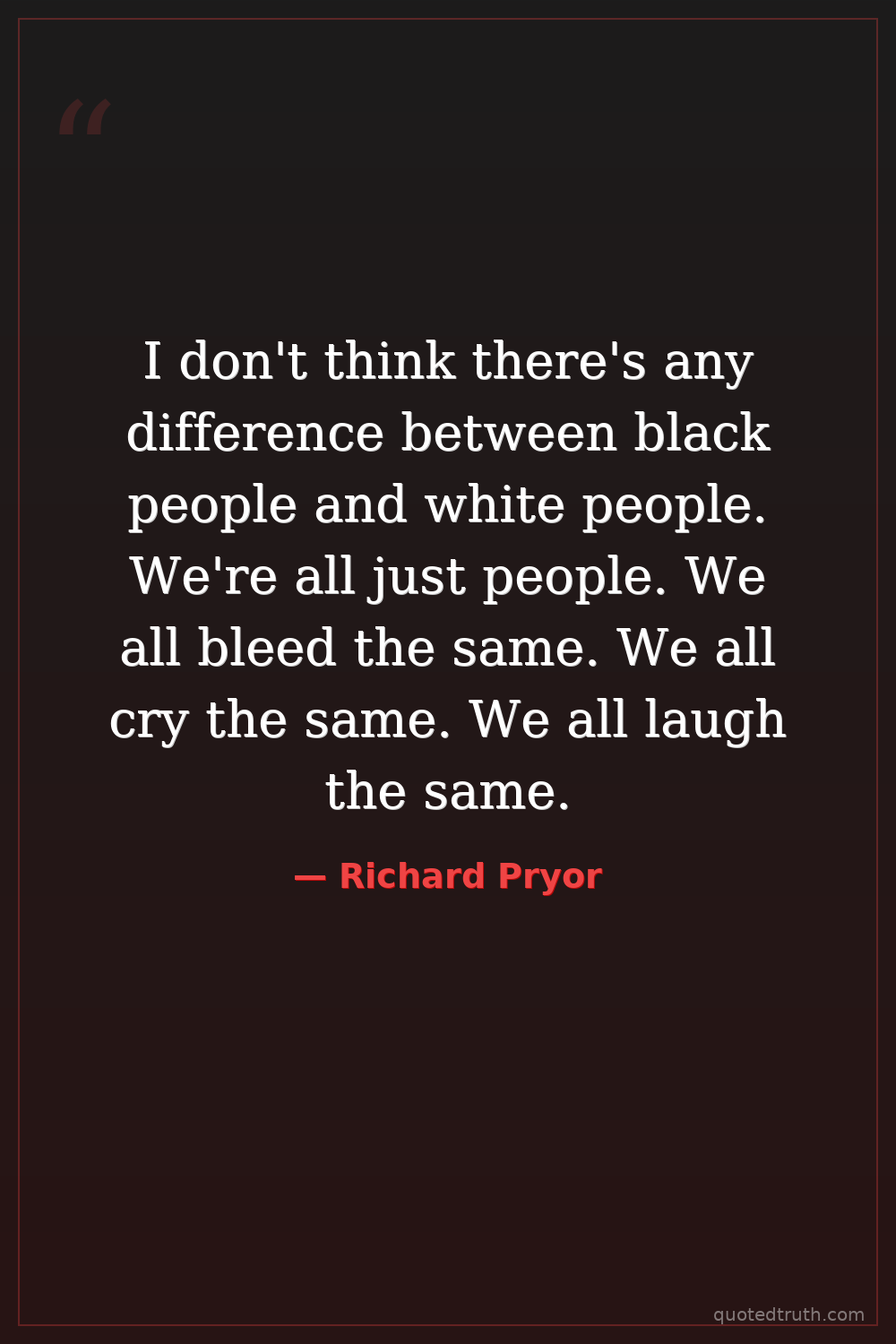 I don't think there's any difference between black people and white people. We're all just people. We all bleed the same. We all cry the same. We all laugh the same.