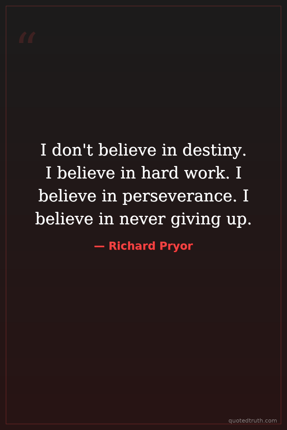 I don't believe in destiny. I believe in hard work. I believe in perseverance. I believe in never giving up.