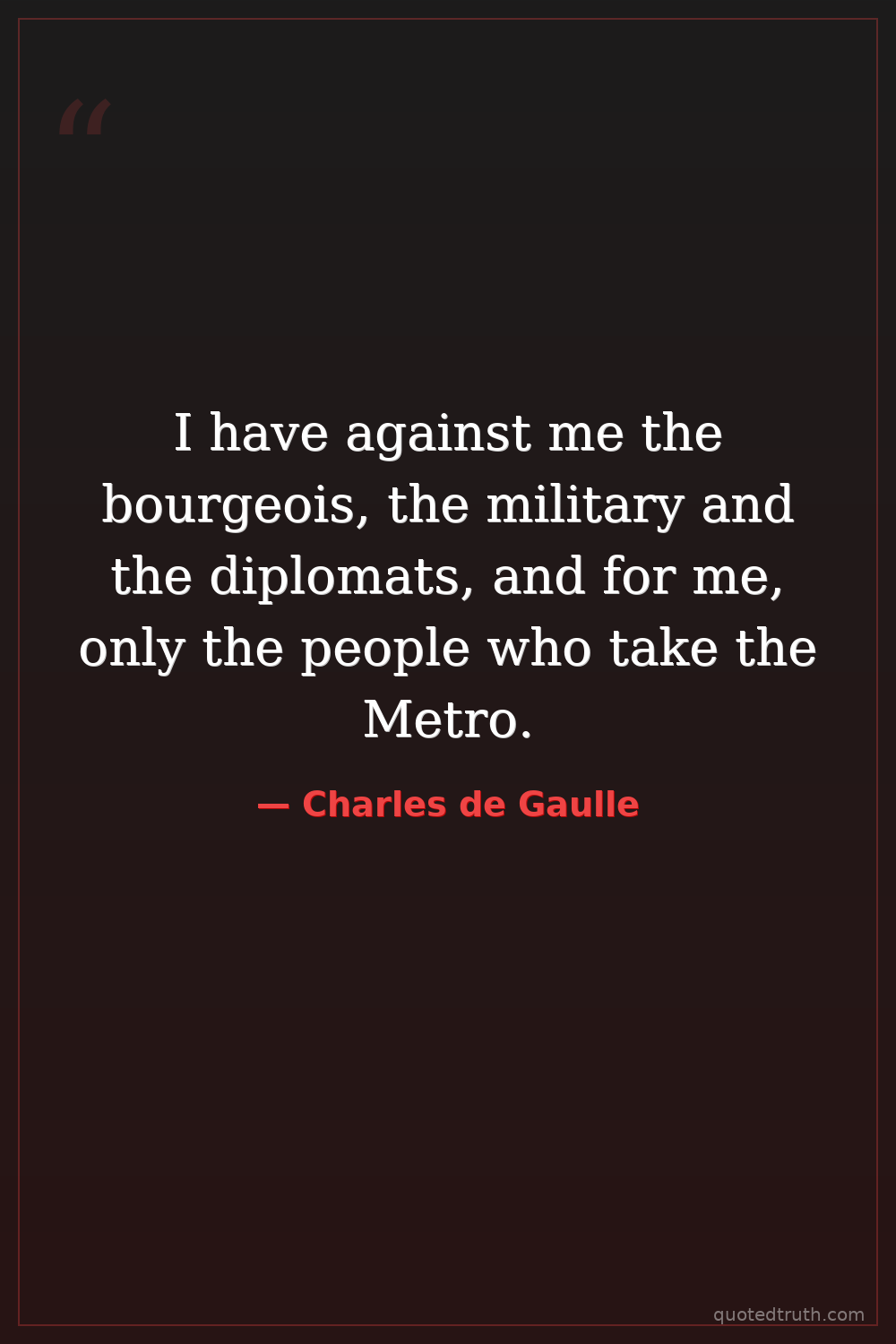 I have against me the bourgeois, the military and the diplomats, and for me, only the people who take the Metro.