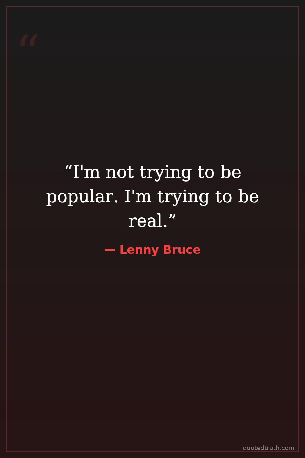 “I'm not trying to be popular. I'm trying to be real.”