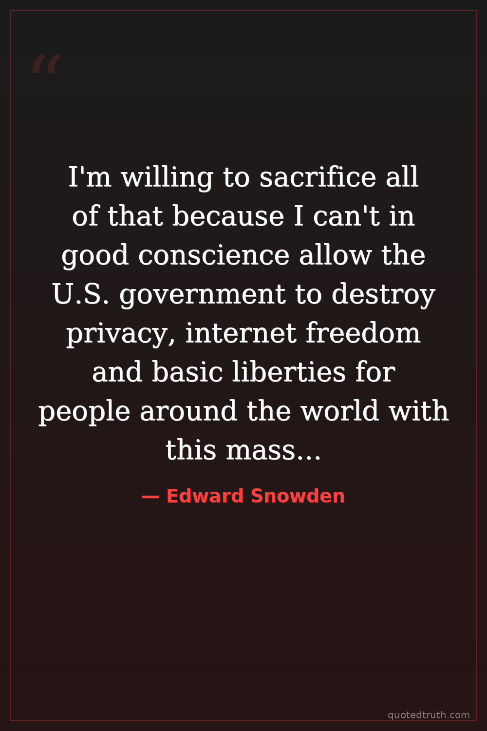 I'm willing to sacrifice all of that because I can't in good conscience allow the U.S. government to destroy privacy, internet freedom and basic liberties for people around the world with this massive surveillance machine they're secretly building.