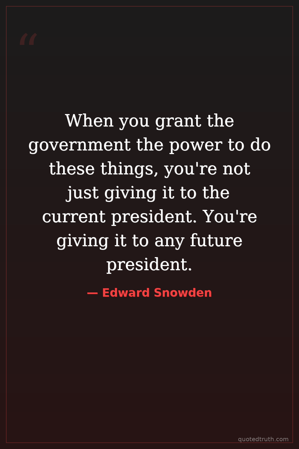 When you grant the government the power to do these things, you're not just giving it to the current president. You're giving it to any future president.
