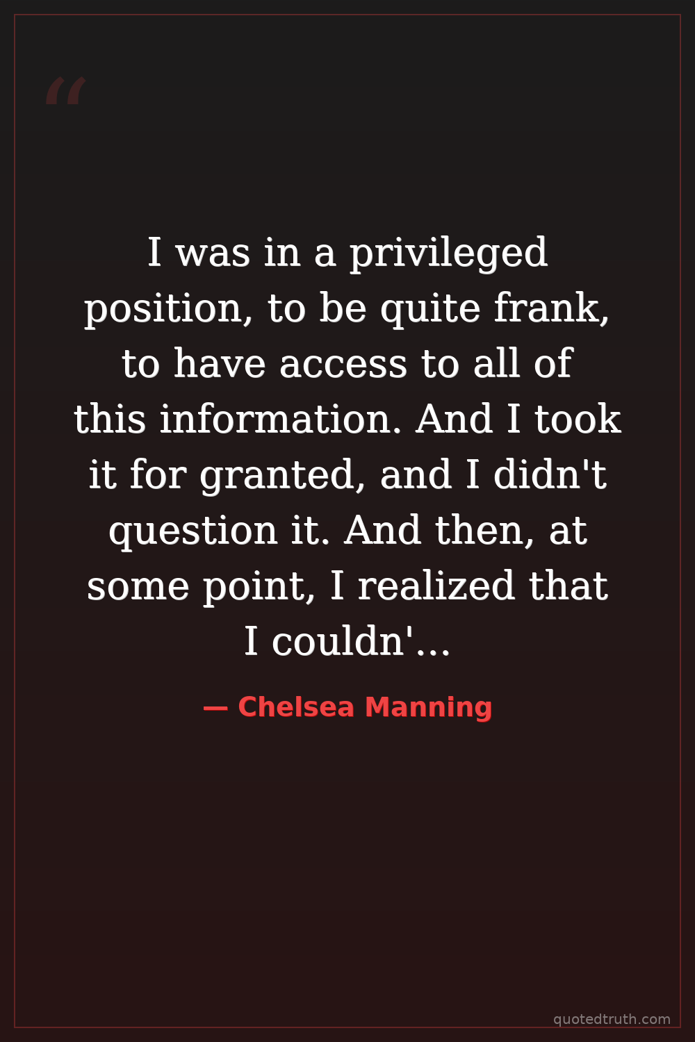 I was in a privileged position, to be quite frank, to have access to all of this information. And I took it for granted, and I didn't question it. And then, at some point, I realized that I couldn't just sit on this information.