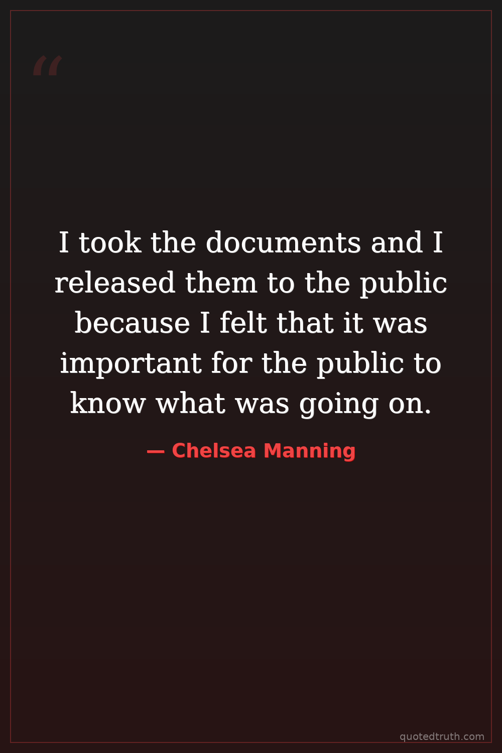 I took the documents and I released them to the public because I felt that it was important for the public to know what was going on.