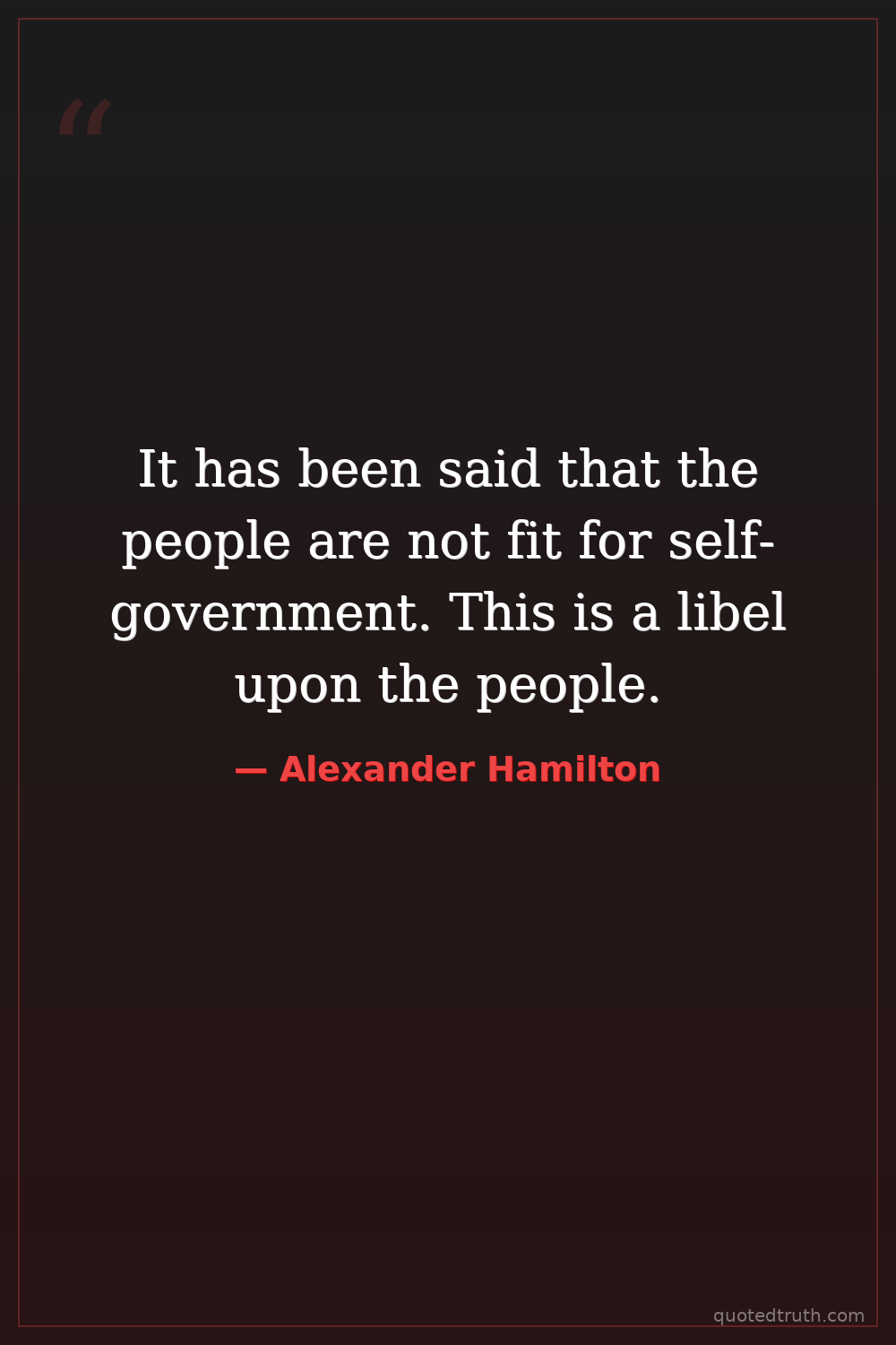 It has been said that the people are not fit for self-government. This is a libel upon the people.