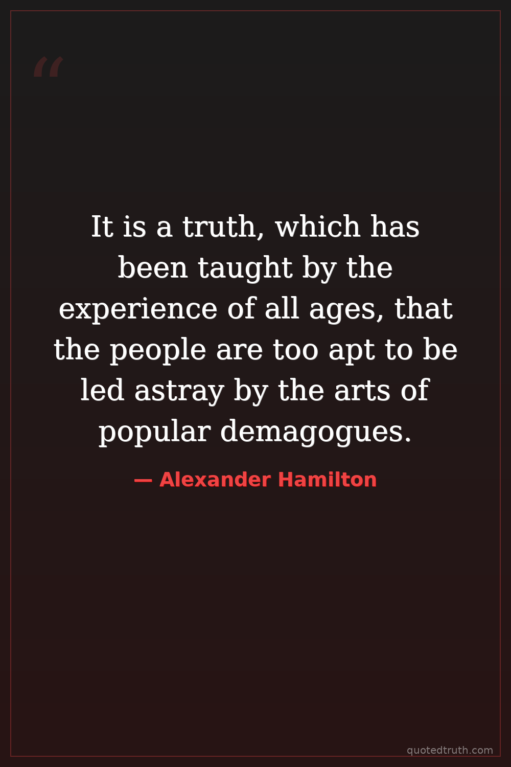 It is a truth, which has been taught by the experience of all ages, that the people are too apt to be led astray by the arts of popular demagogues.