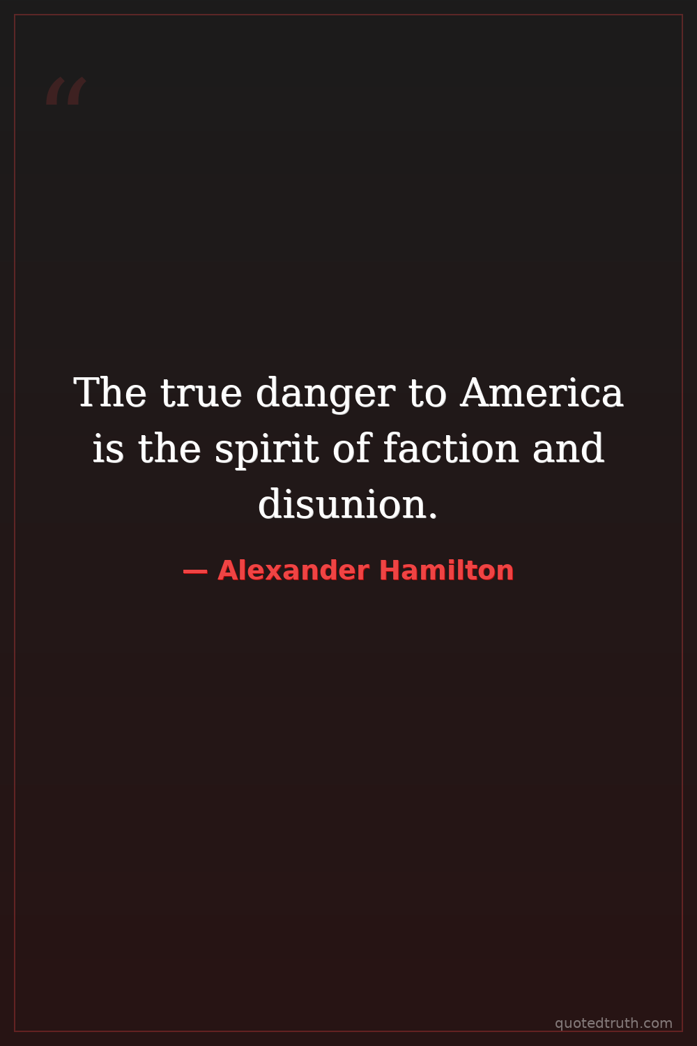 The true danger to America is the spirit of faction and disunion.