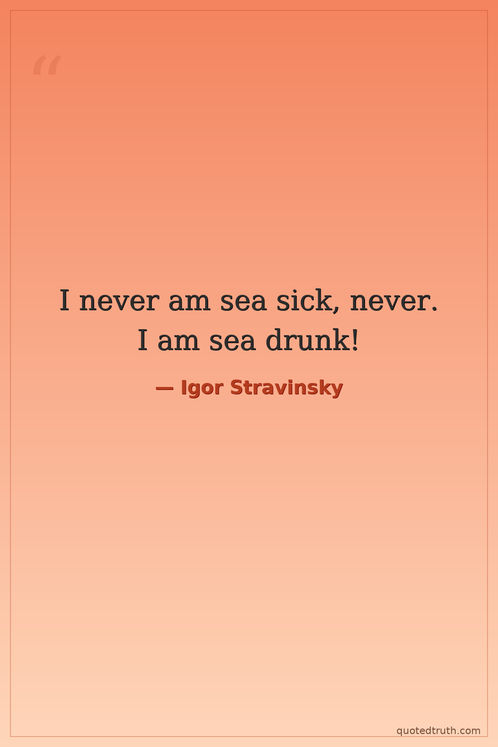 I never am sea sick, never. I am sea drunk!