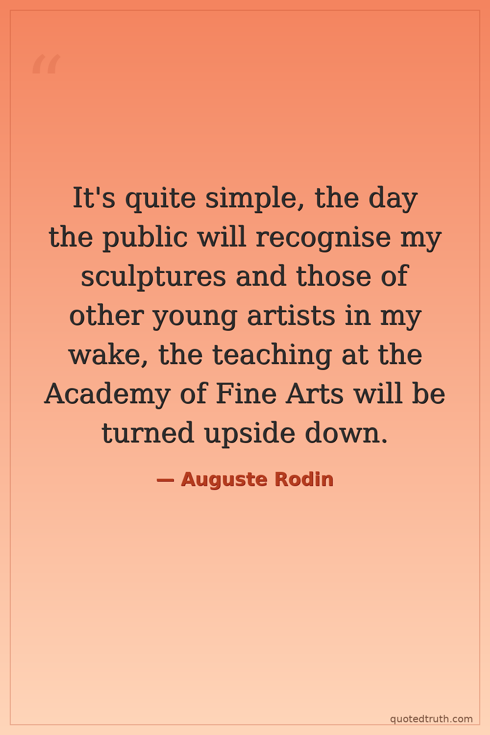It's quite simple, the day the public will recognise my sculptures and those of other young artists in my wake, the teaching at the Academy of Fine Arts will be turned upside down.
