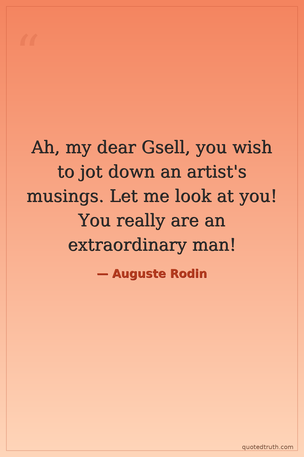 Ah, my dear Gsell, you wish to jot down an artist's musings. Let me look at you! You really are an extraordinary man!