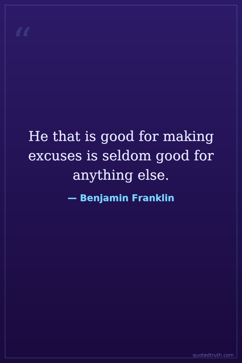 He that is good for making excuses is seldom good for anything else.