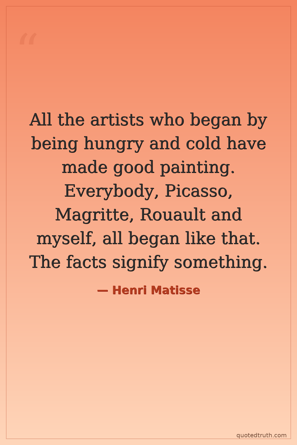 All the artists who began by being hungry and cold have made good painting. Everybody, Picasso, Magritte, Rouault and myself, all began like that. The facts signify something.