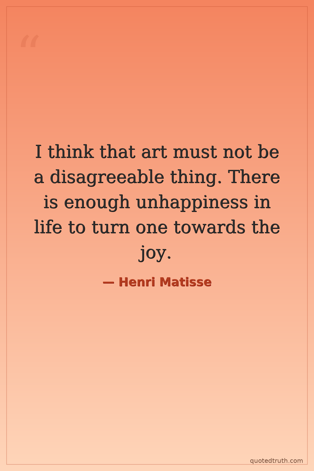 I think that art must not be a disagreeable thing. There is enough unhappiness in life to turn one towards the joy.