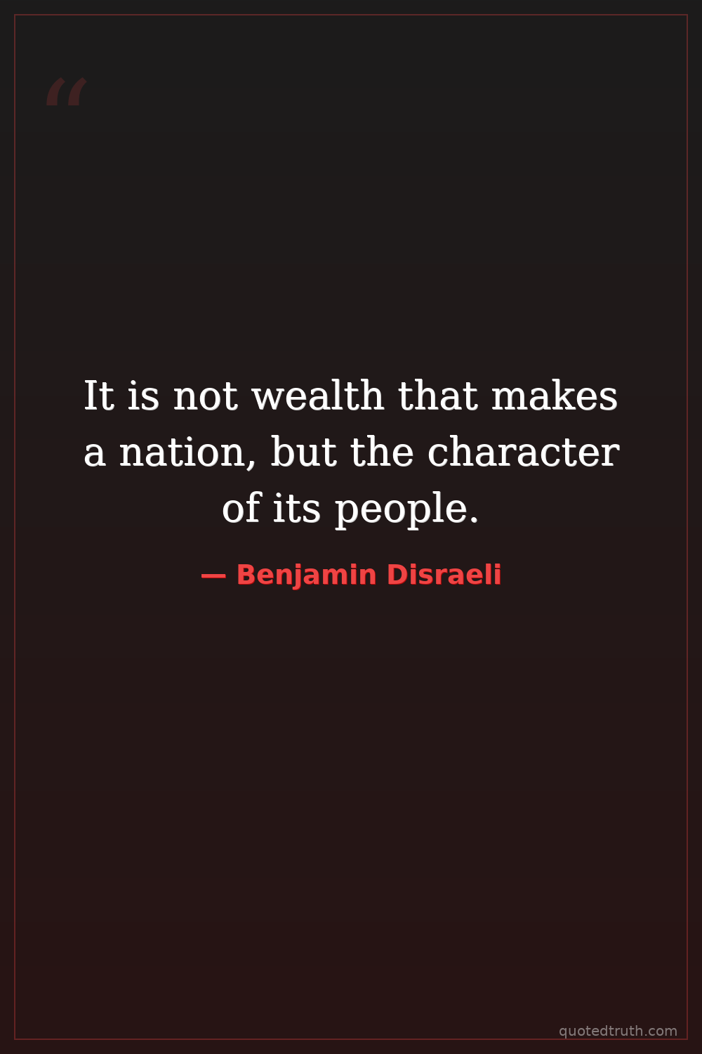 It is not wealth that makes a nation, but the character of its people.