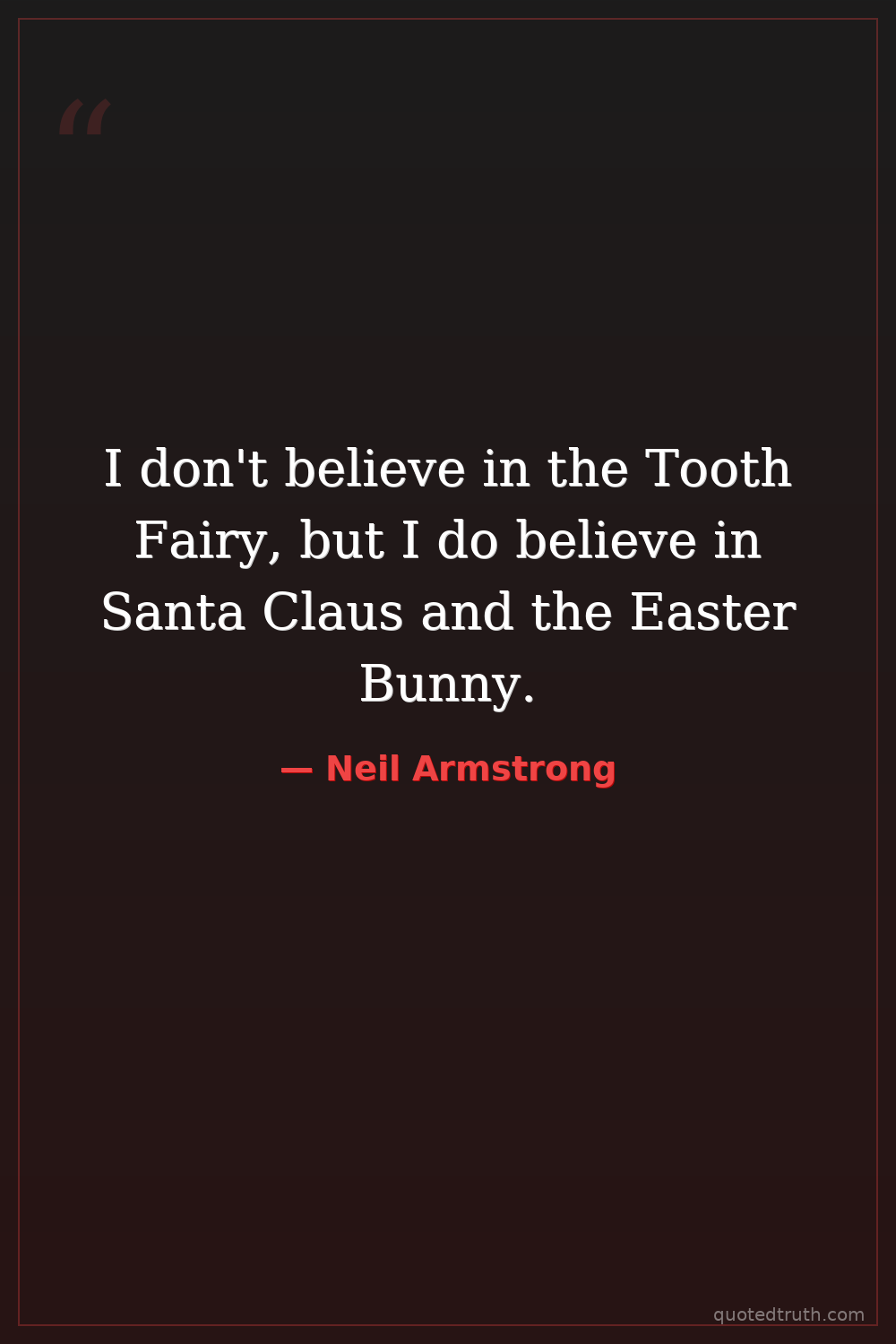 I don't believe in the Tooth Fairy, but I do believe in Santa Claus and the Easter Bunny.
